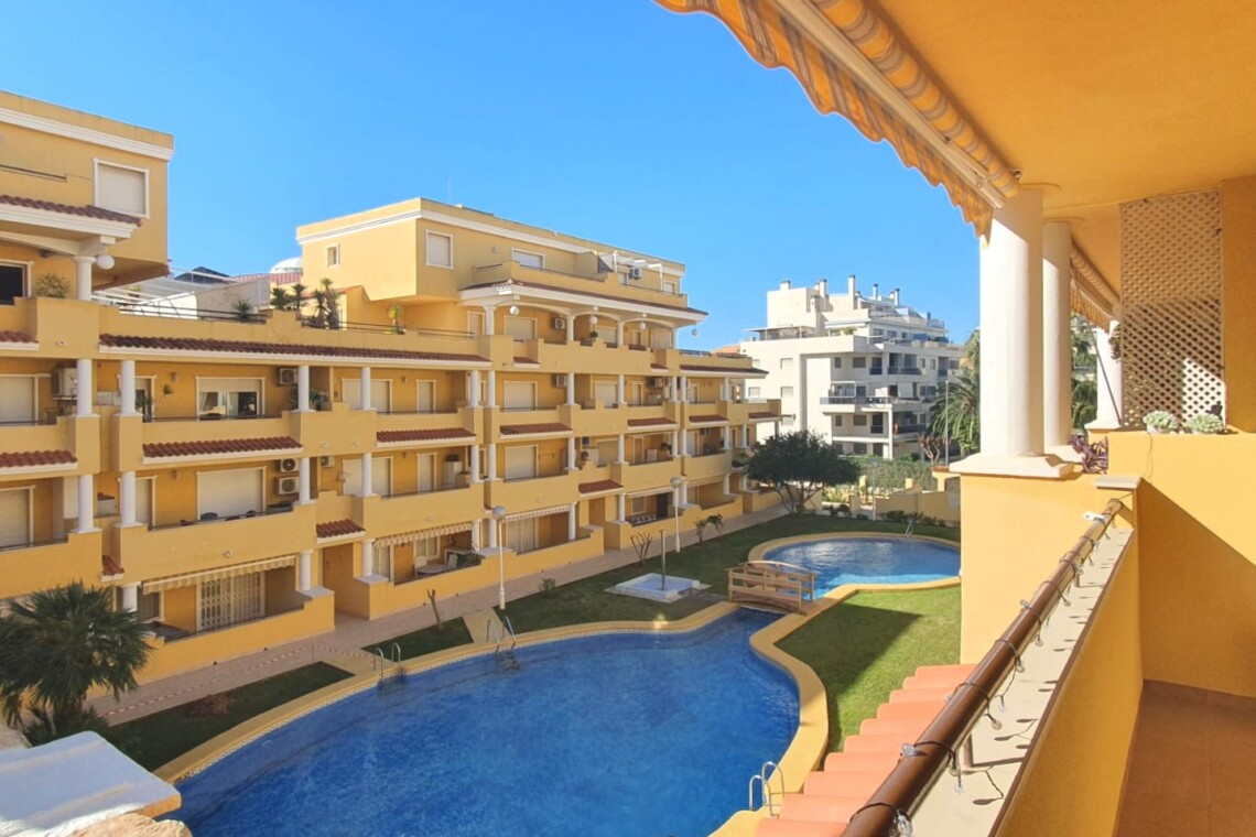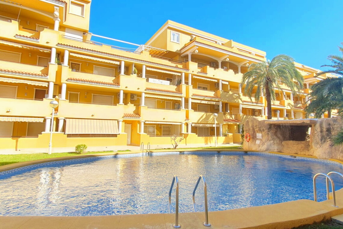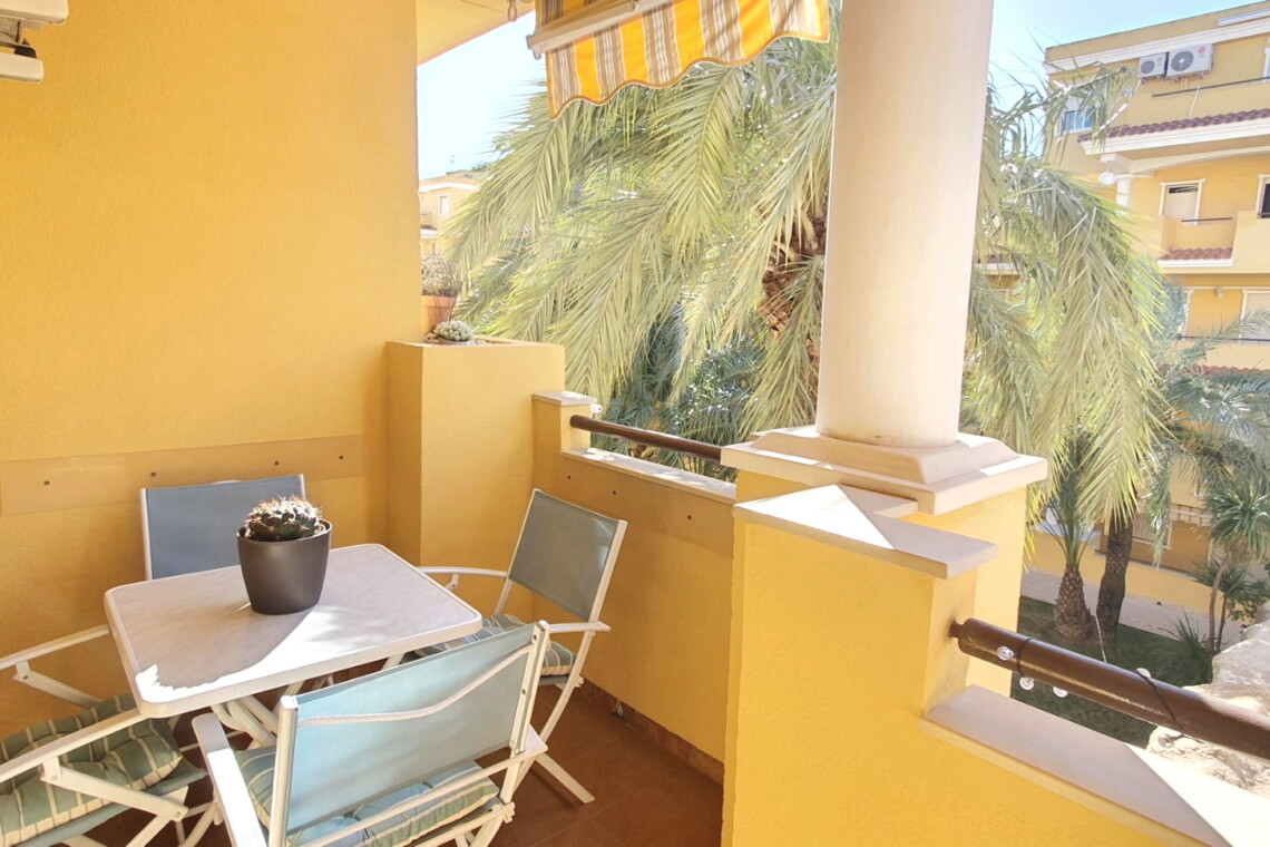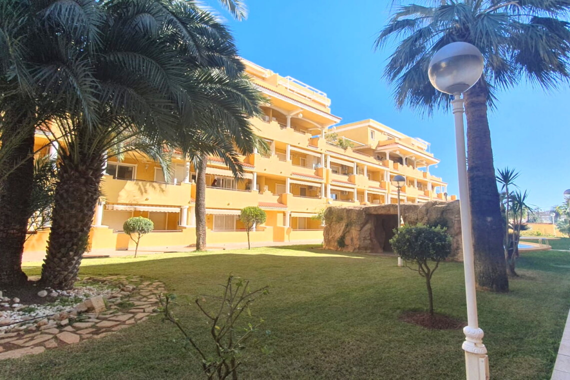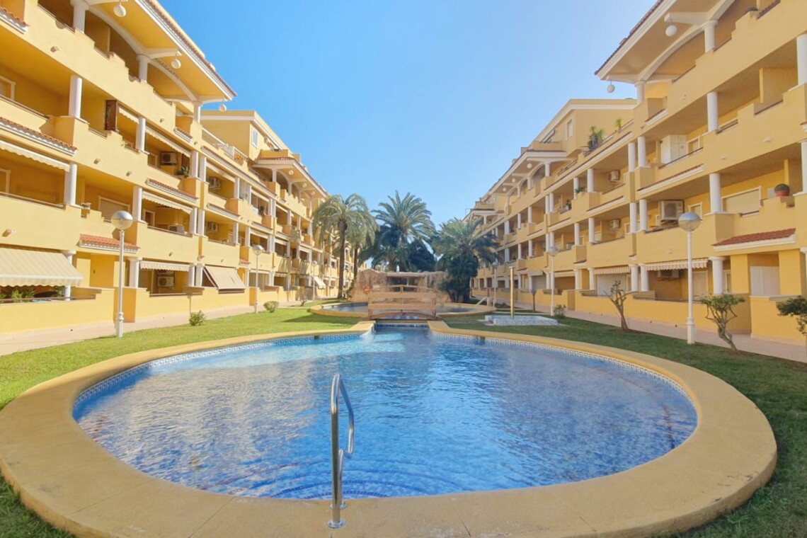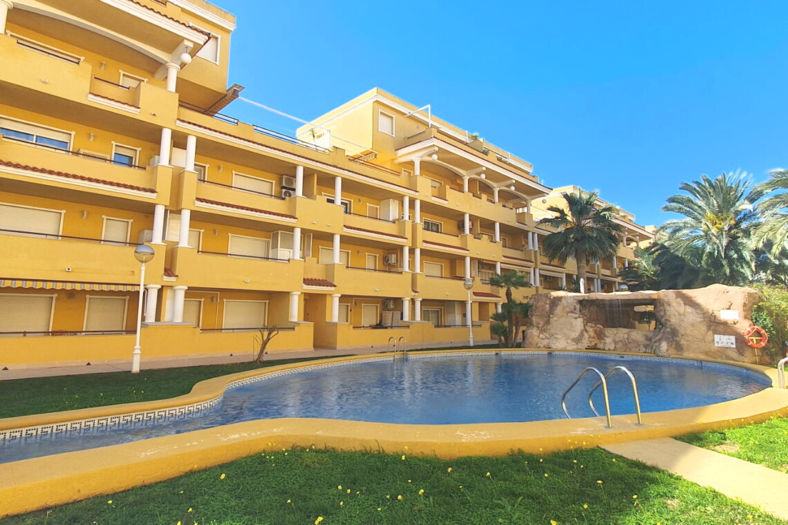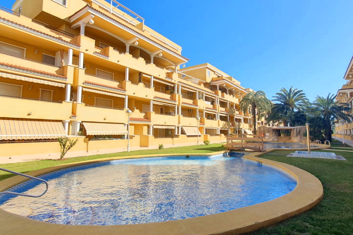 La urbanización cuenta con dos piscinas, dos para adultos y otras dos para los peques, además de una zona ajardinada que invita a disfrutar del buen clima mediterráneo. La ubicación es inmejorable: a solo 150 metros de la playa y a 500 metros de Denia, donde encontrarás supermercados y restaurantes. Además, el apartamento incluye una plaza de garaje numerada subterránea.