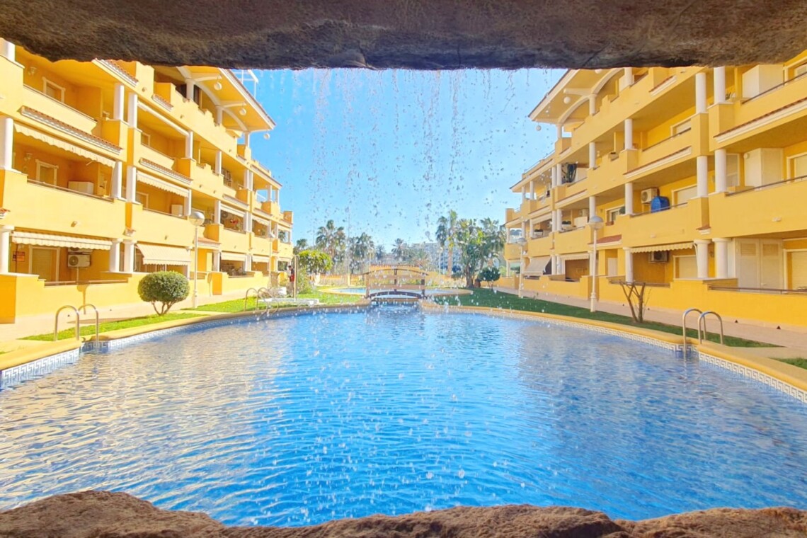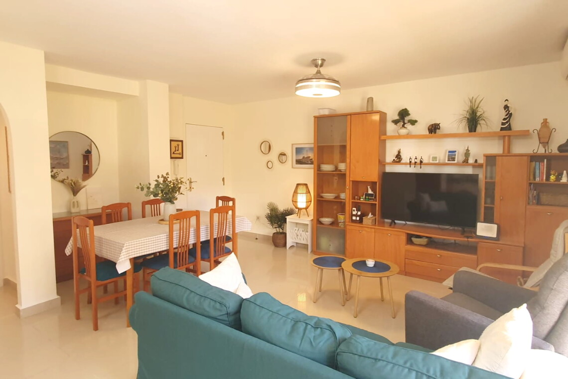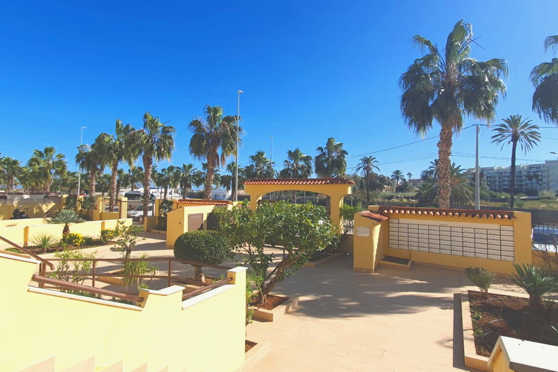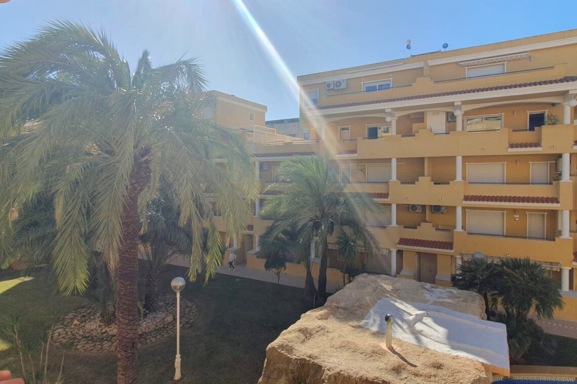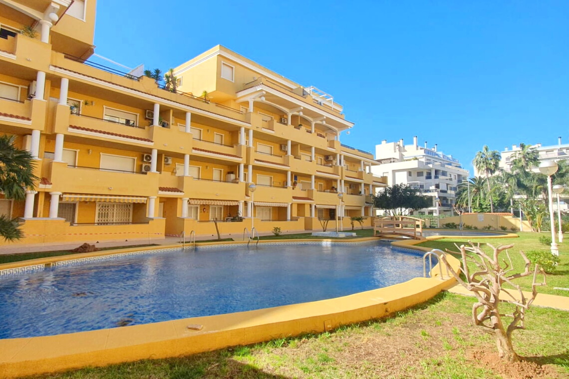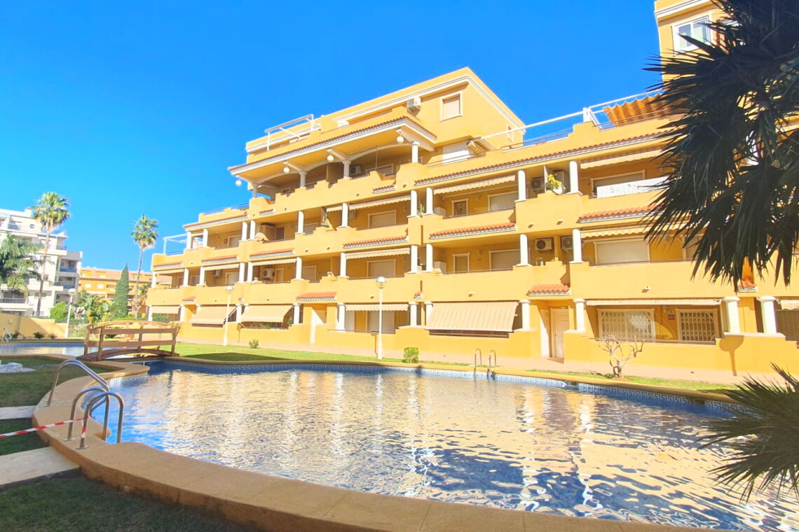 La urbanización cuenta con dos piscinas, dos para adultos y otras dos para los peques, además de una zona ajardinada que invita a disfrutar del buen clima mediterráneo. La ubicación es inmejorable: a solo 150 metros de la playa y a 500 metros de Denia, donde encontrarás supermercados y restaurantes. Además, el apartamento incluye una plaza de garaje numerada subterránea.