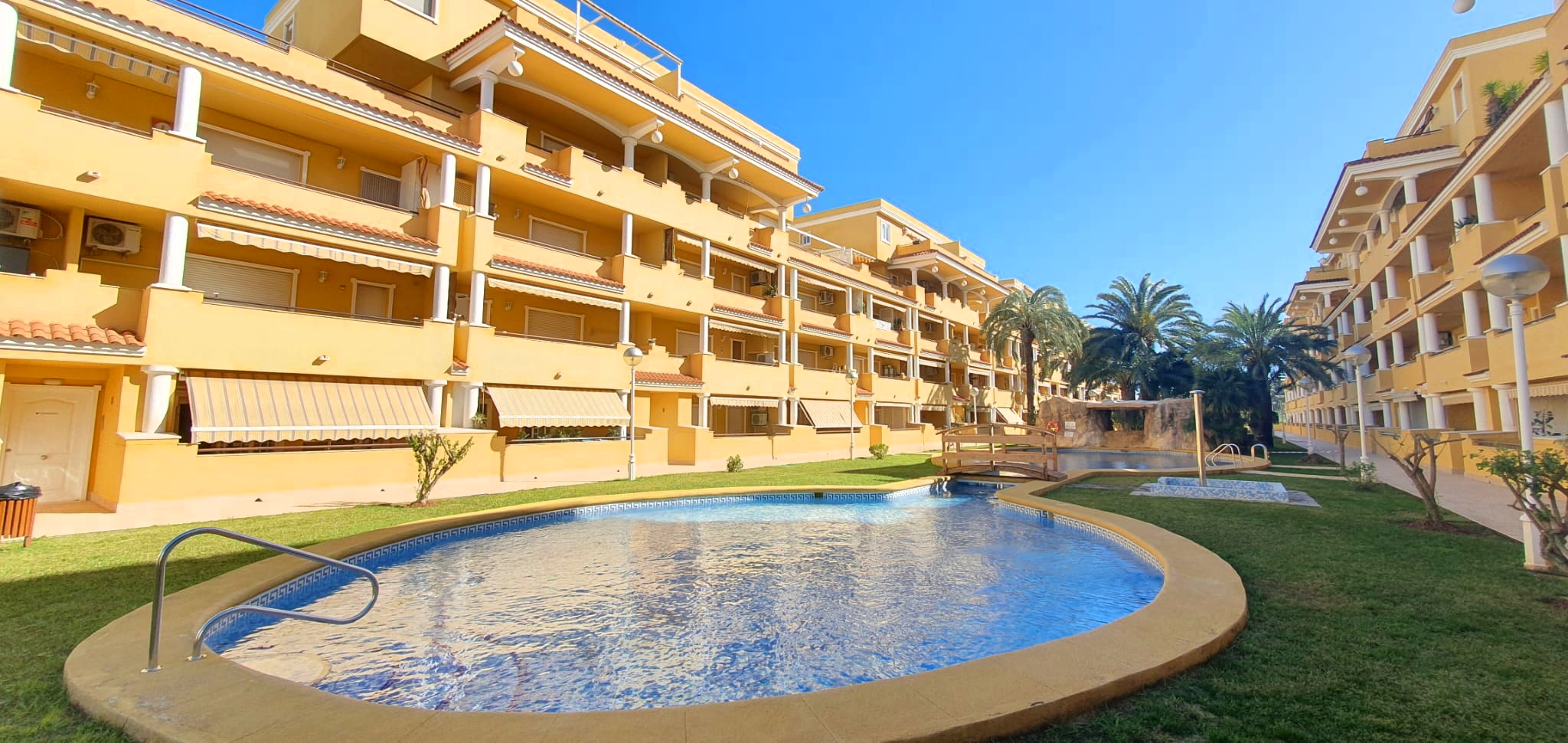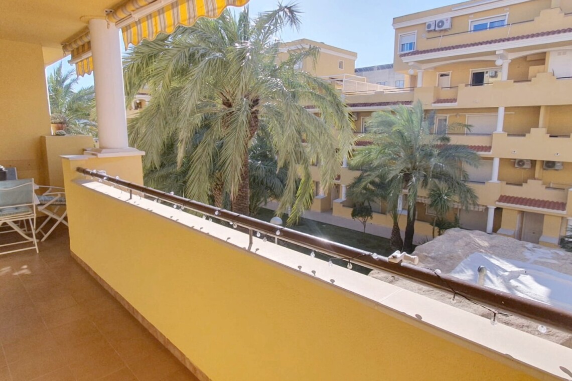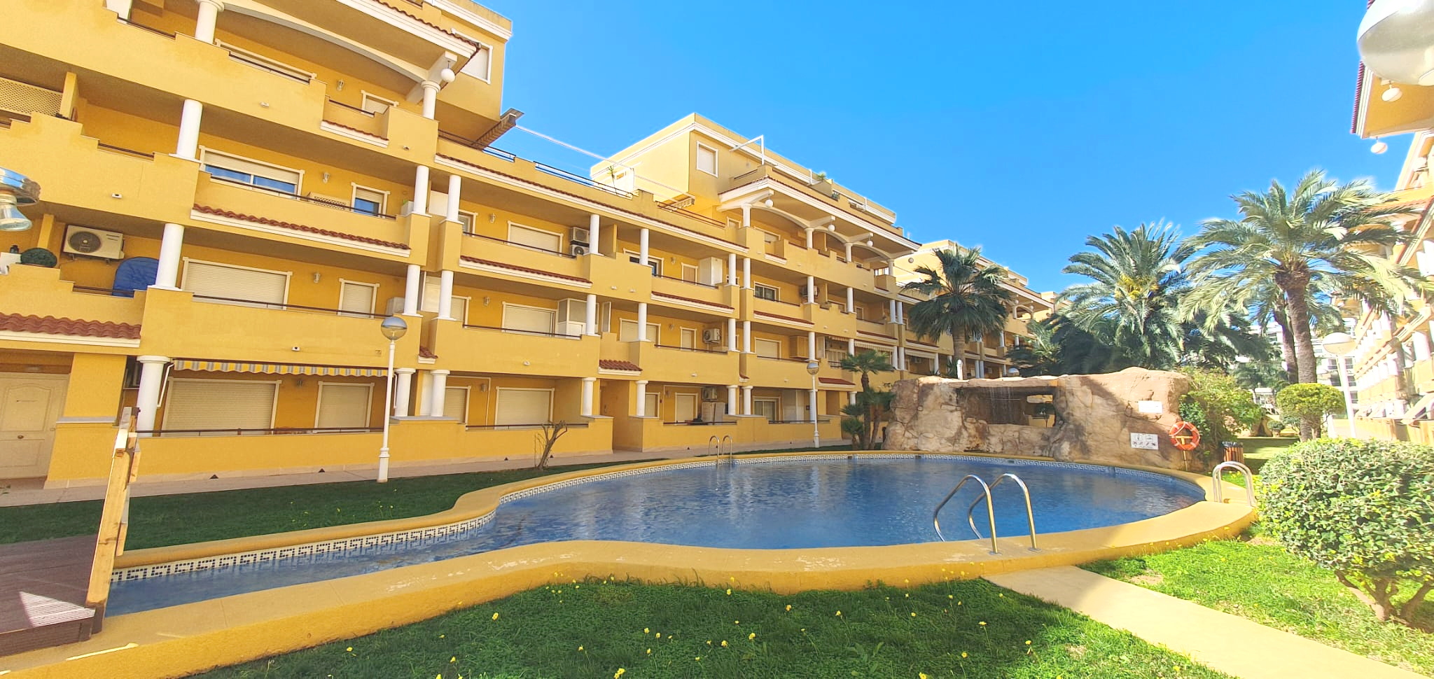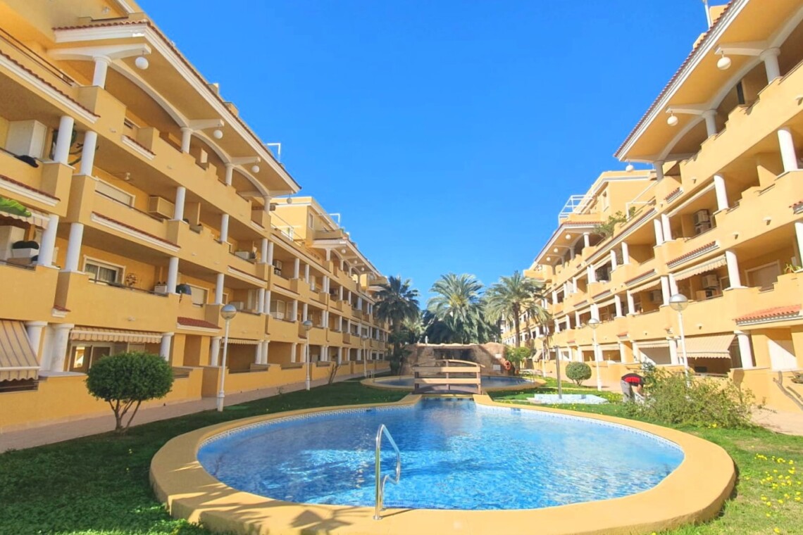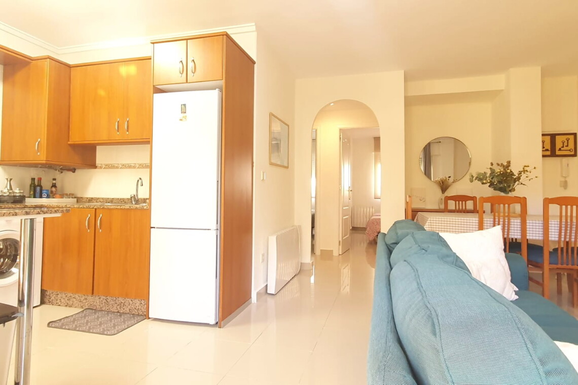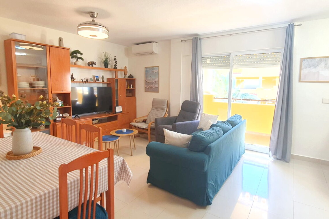 La urbanización cuenta con dos piscinas, dos para adultos y otras dos para los peques, además de una zona ajardinada que invita a disfrutar del buen clima mediterráneo. La ubicación es inmejorable: a solo 150 metros de la playa y a 500 metros de Denia, donde encontrarás supermercados y restaurantes. Además, el apartamento incluye una plaza de garaje numerada subterránea.