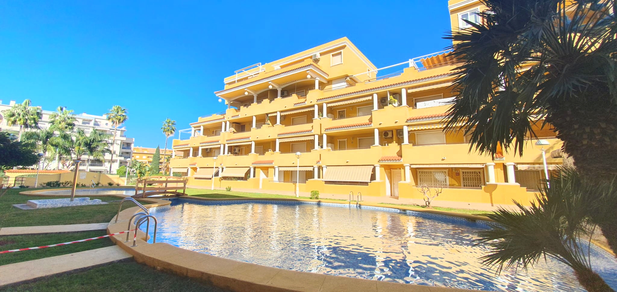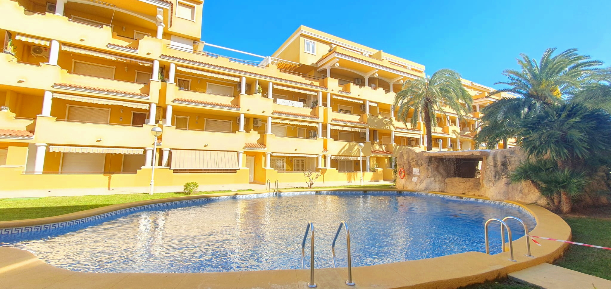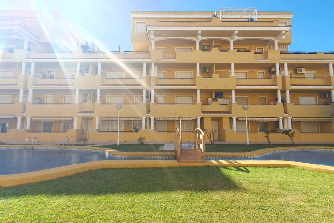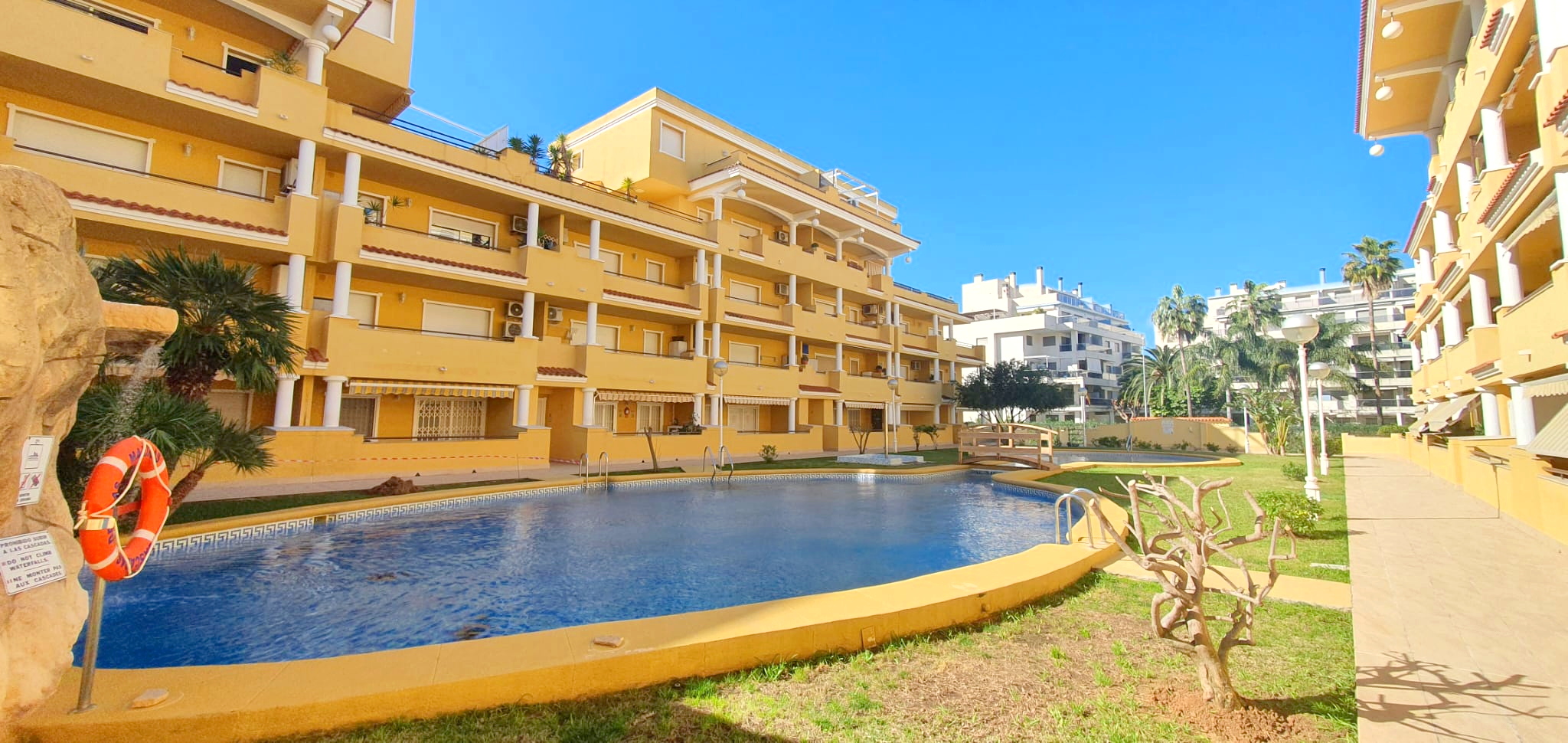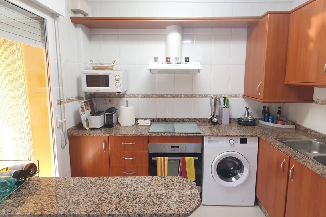 La urbanización cuenta con dos piscinas, dos para adultos y otras dos para los peques, además de una zona ajardinada que invita a disfrutar del buen clima mediterráneo. La ubicación es inmejorable: a solo 150 metros de la playa y a 500 metros de Denia, donde encontrarás supermercados y restaurantes. Además, el apartamento incluye una plaza de garaje numerada subterránea.