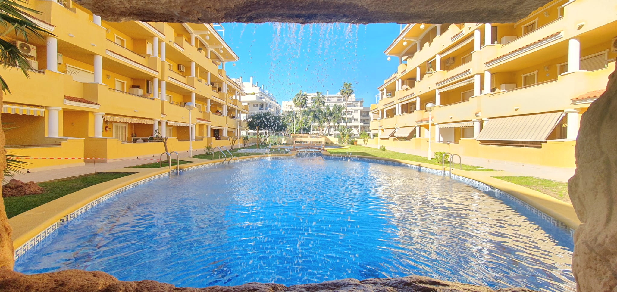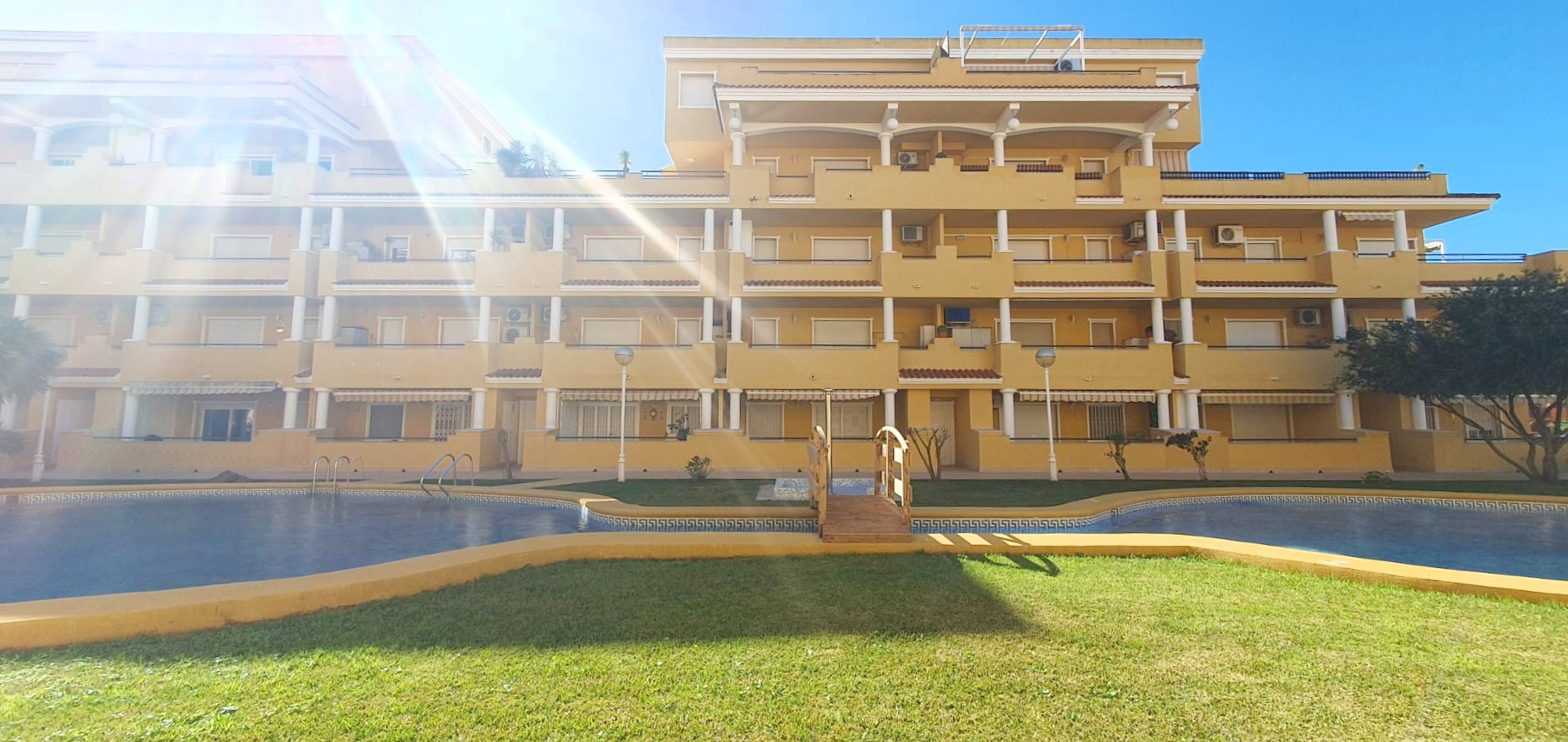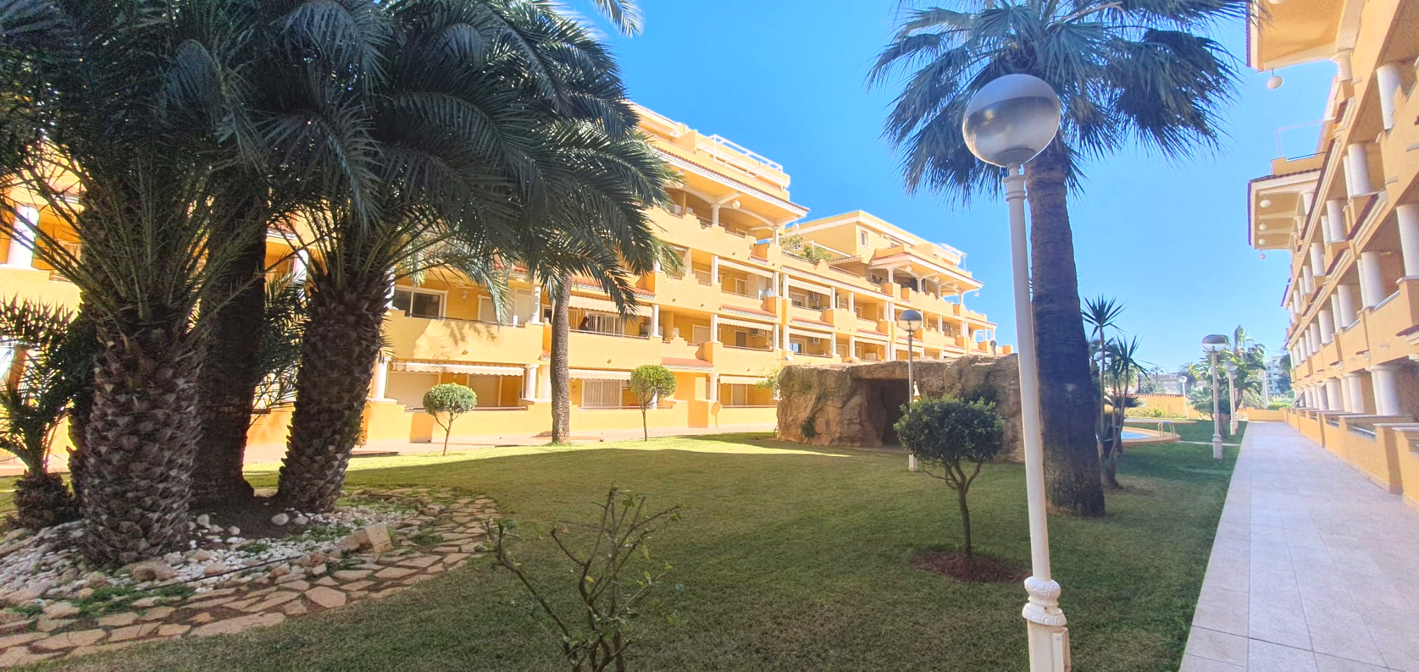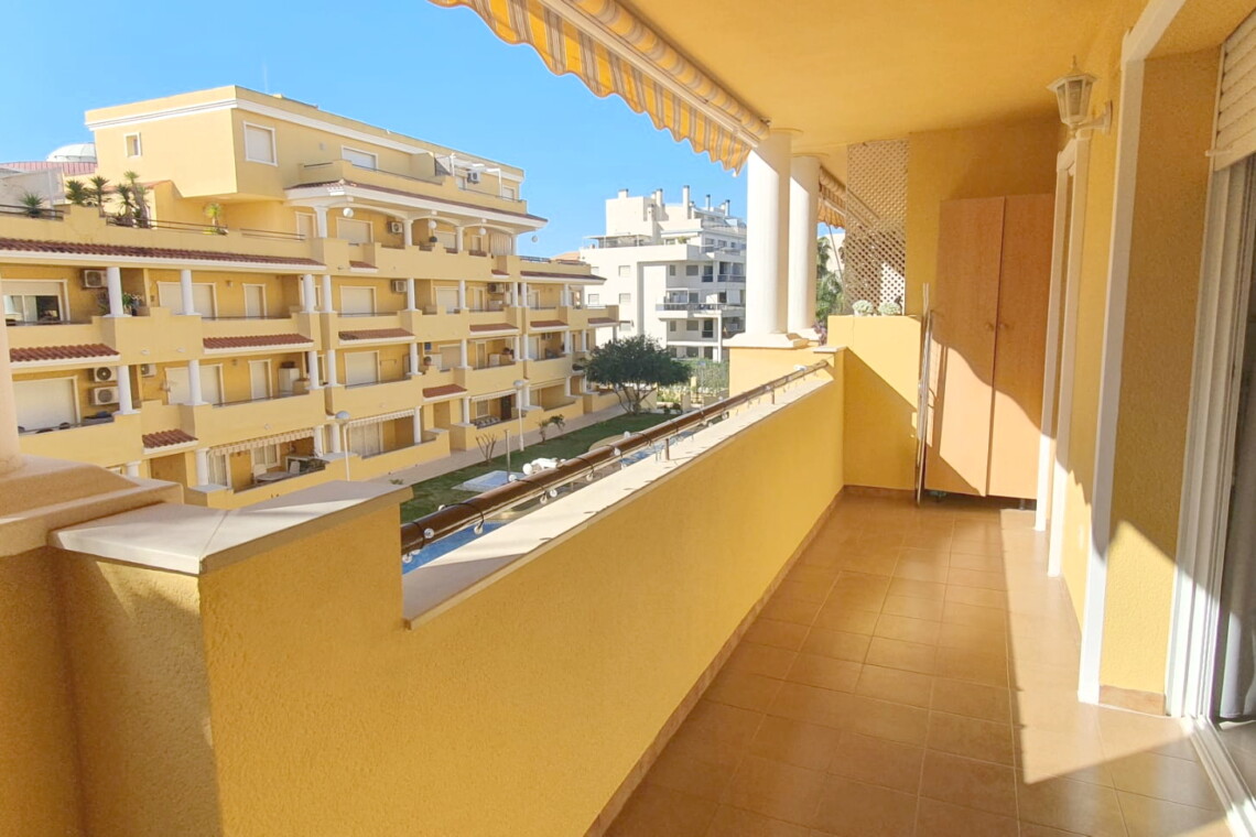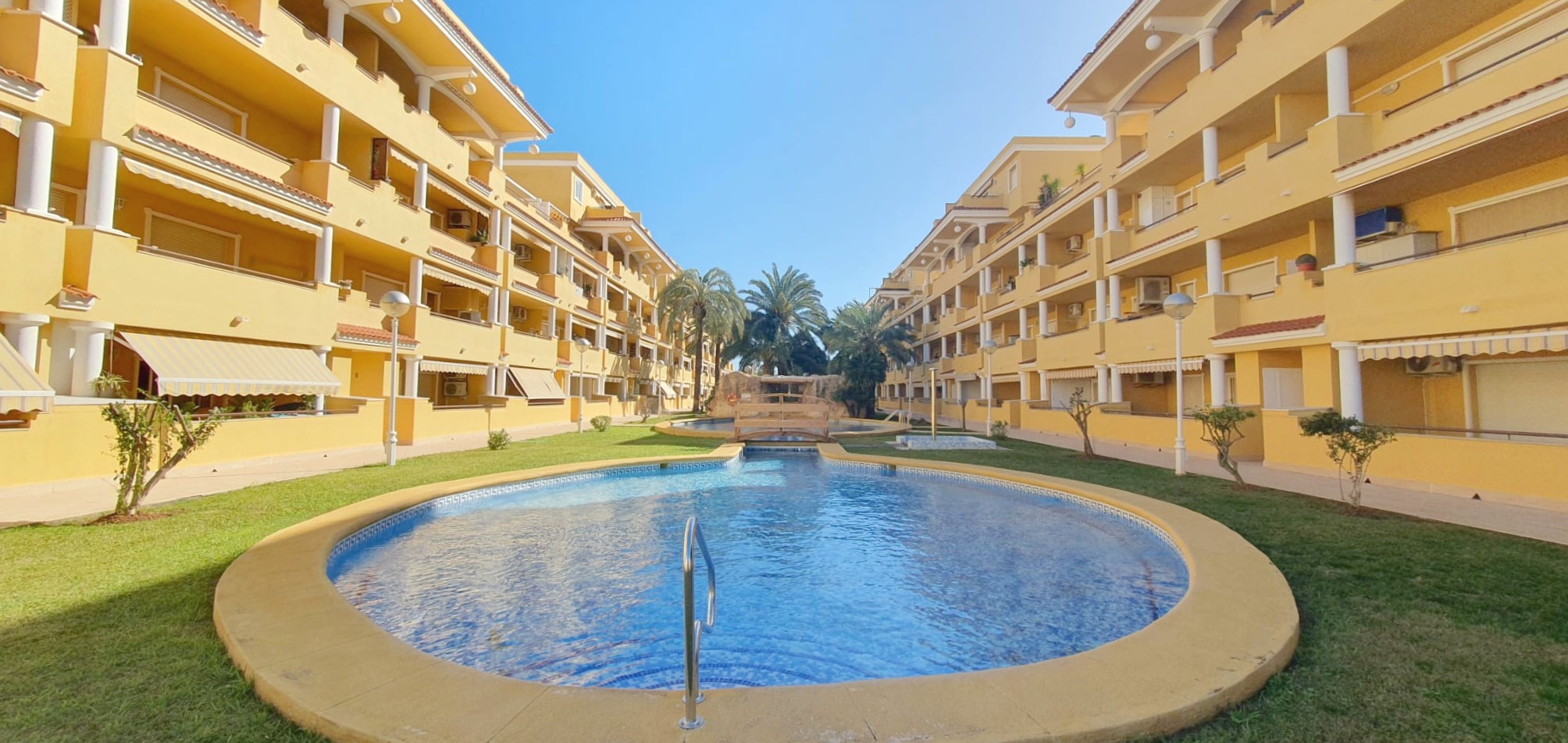 La urbanización cuenta con dos piscinas, dos para adultos y otras dos para los peques, además de una zona ajardinada que invita a disfrutar del buen clima mediterráneo. La ubicación es inmejorable: a solo 150 metros de la playa y a 500 metros de Denia, donde encontrarás supermercados y restaurantes. Además, el apartamento incluye una plaza de garaje numerada subterránea.