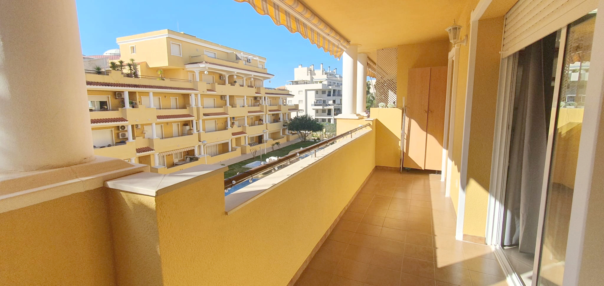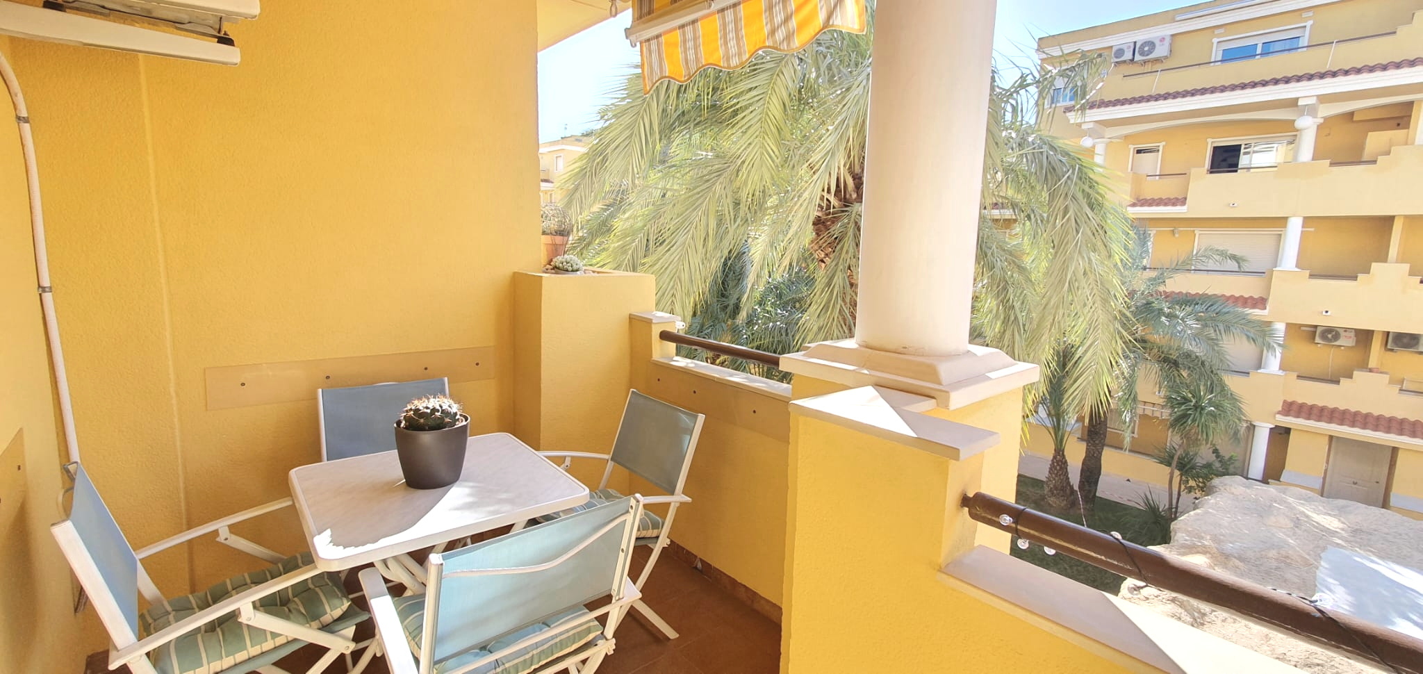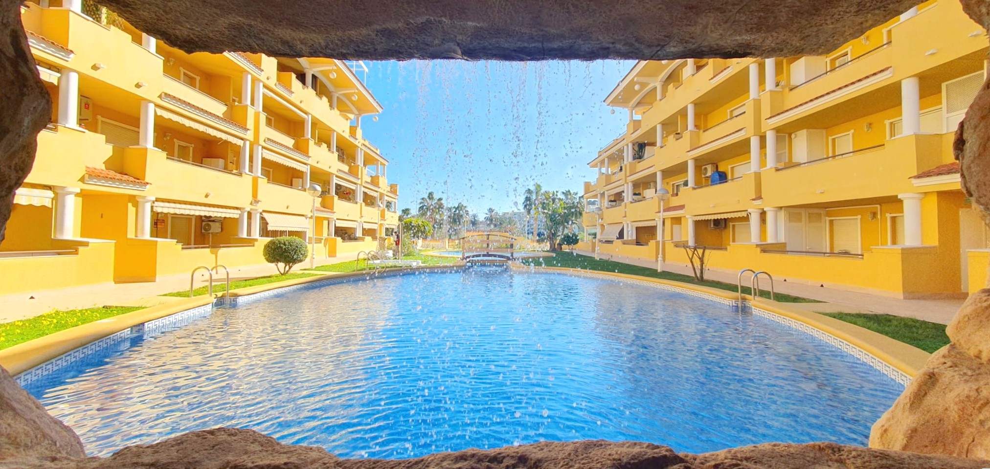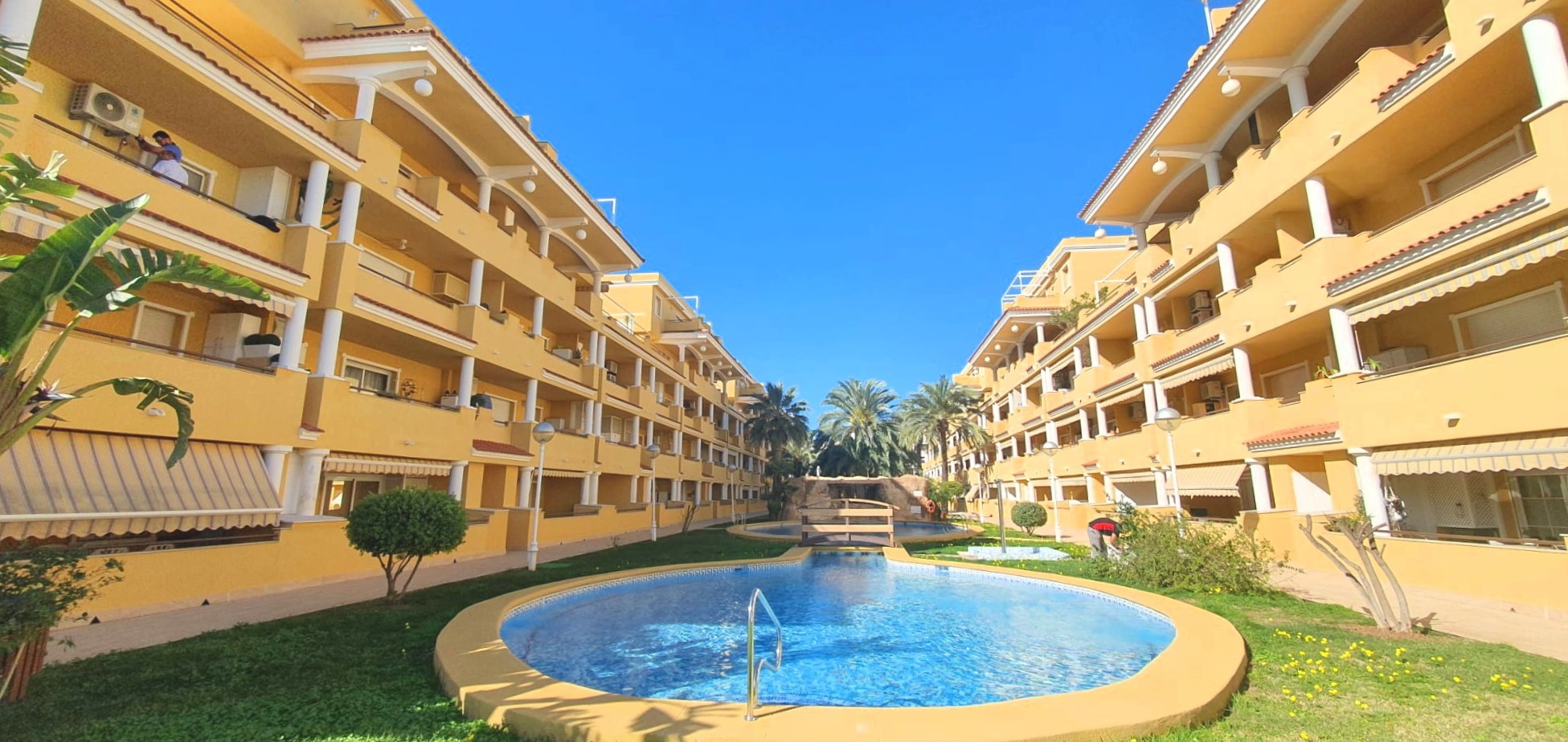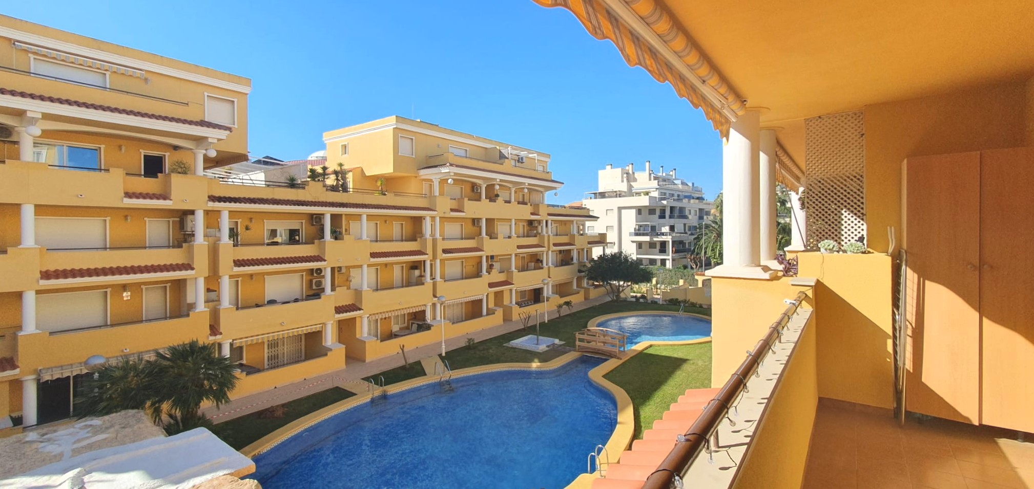 La urbanización cuenta con dos piscinas, dos para adultos y otras dos para los peques, además de una zona ajardinada que invita a disfrutar del buen clima mediterráneo. La ubicación es inmejorable: a solo 150 metros de la playa y a 500 metros de Denia, donde encontrarás supermercados y restaurantes. Además, el apartamento incluye una plaza de garaje numerada subterránea.
